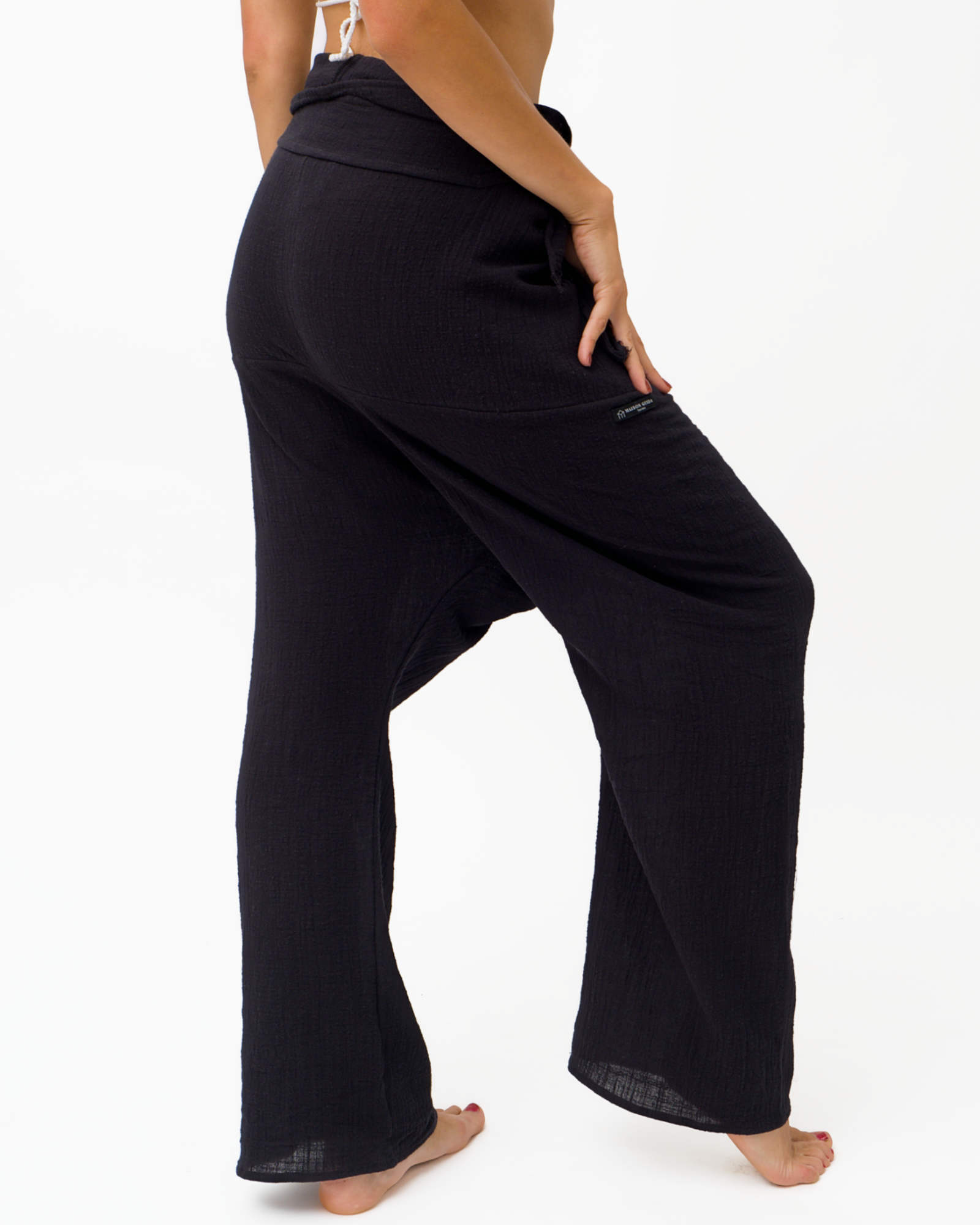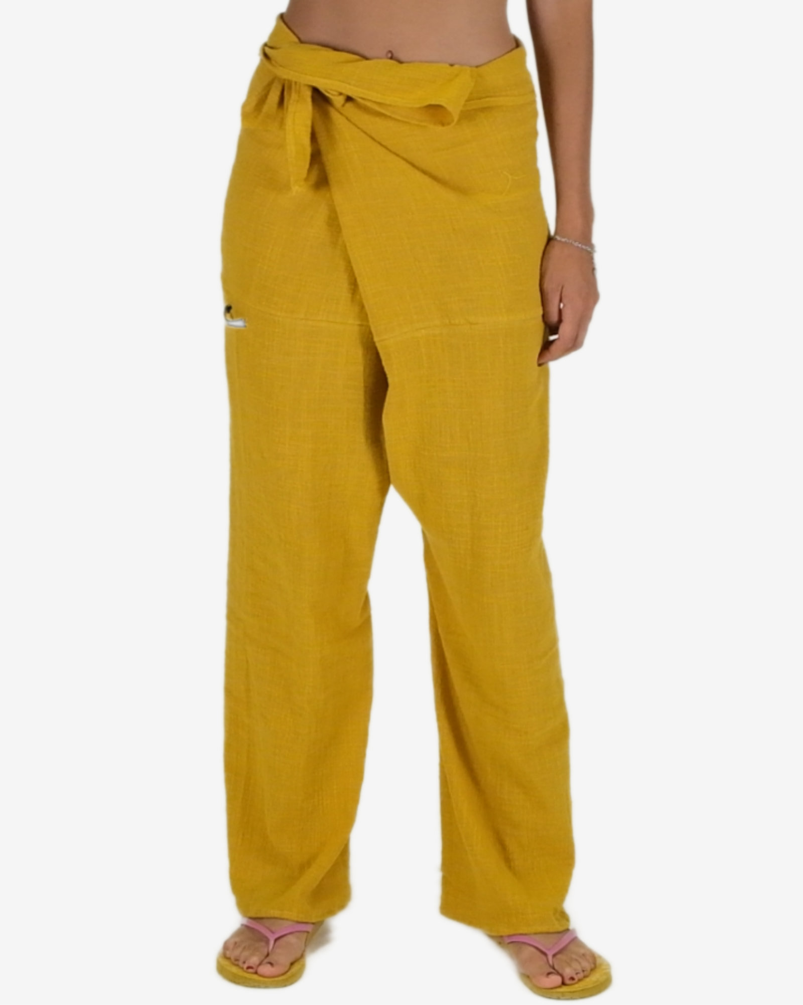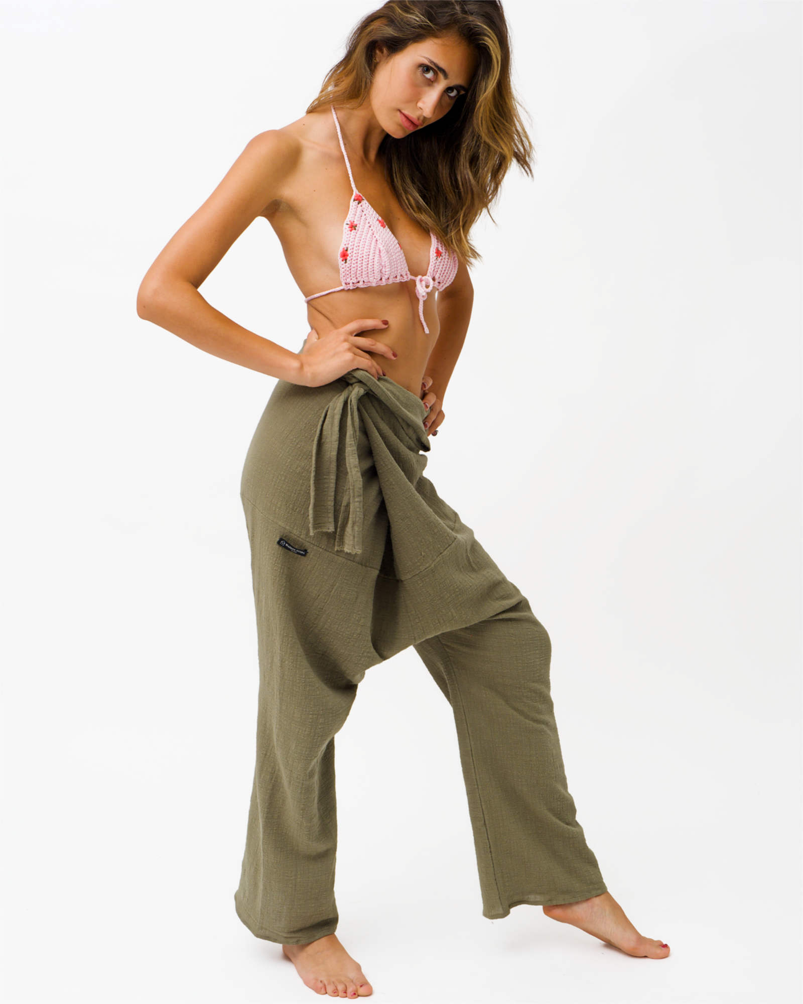 DESIGNAdjustable wrap style, wide leg, lightweight feel, handmade with artisanal detail
