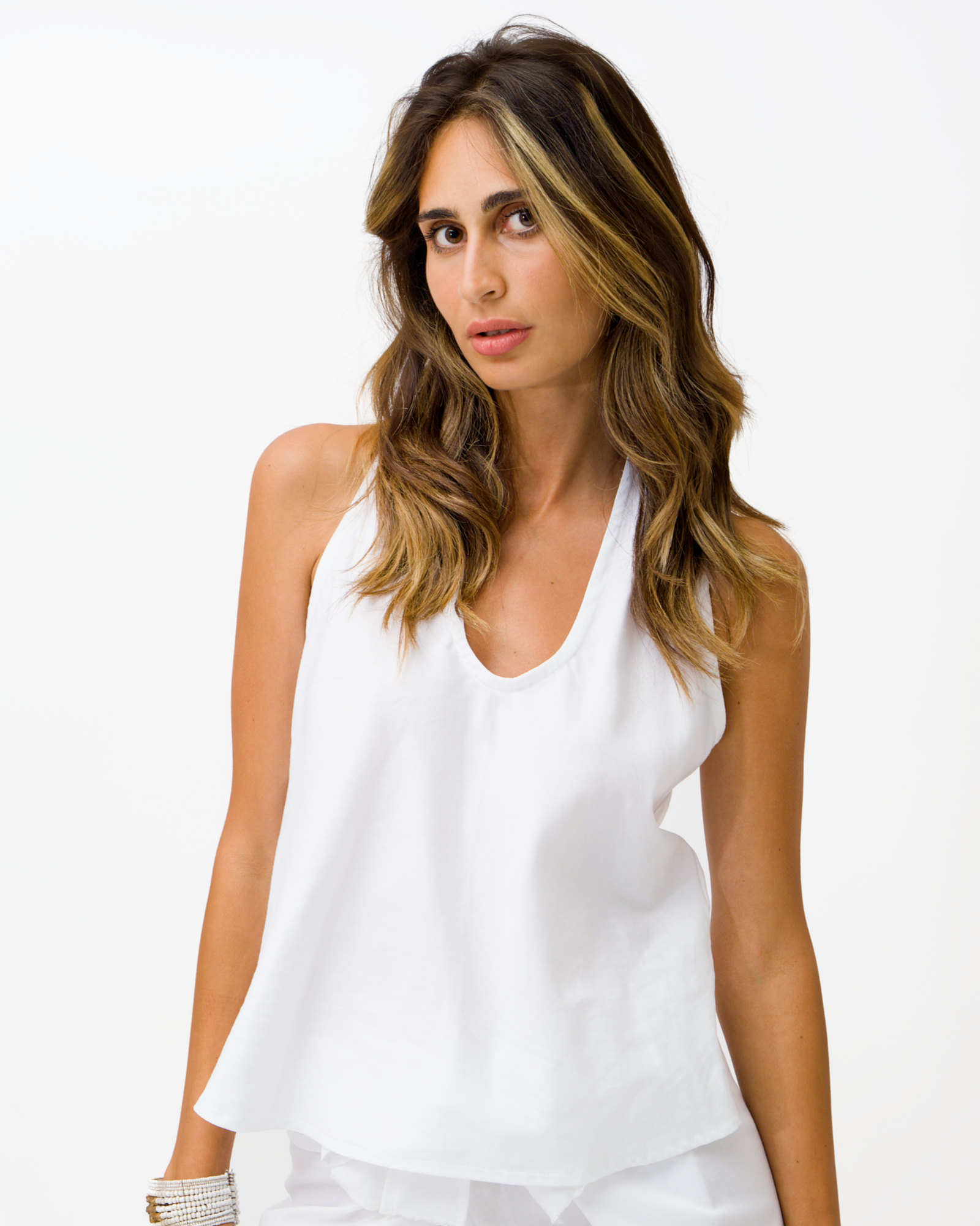 Minimalist halter-neck top in 100% GOTS-certified Italian cotton micro piquet. Light, versatile, and handmade in Italy - designed for timeless summer elegance.